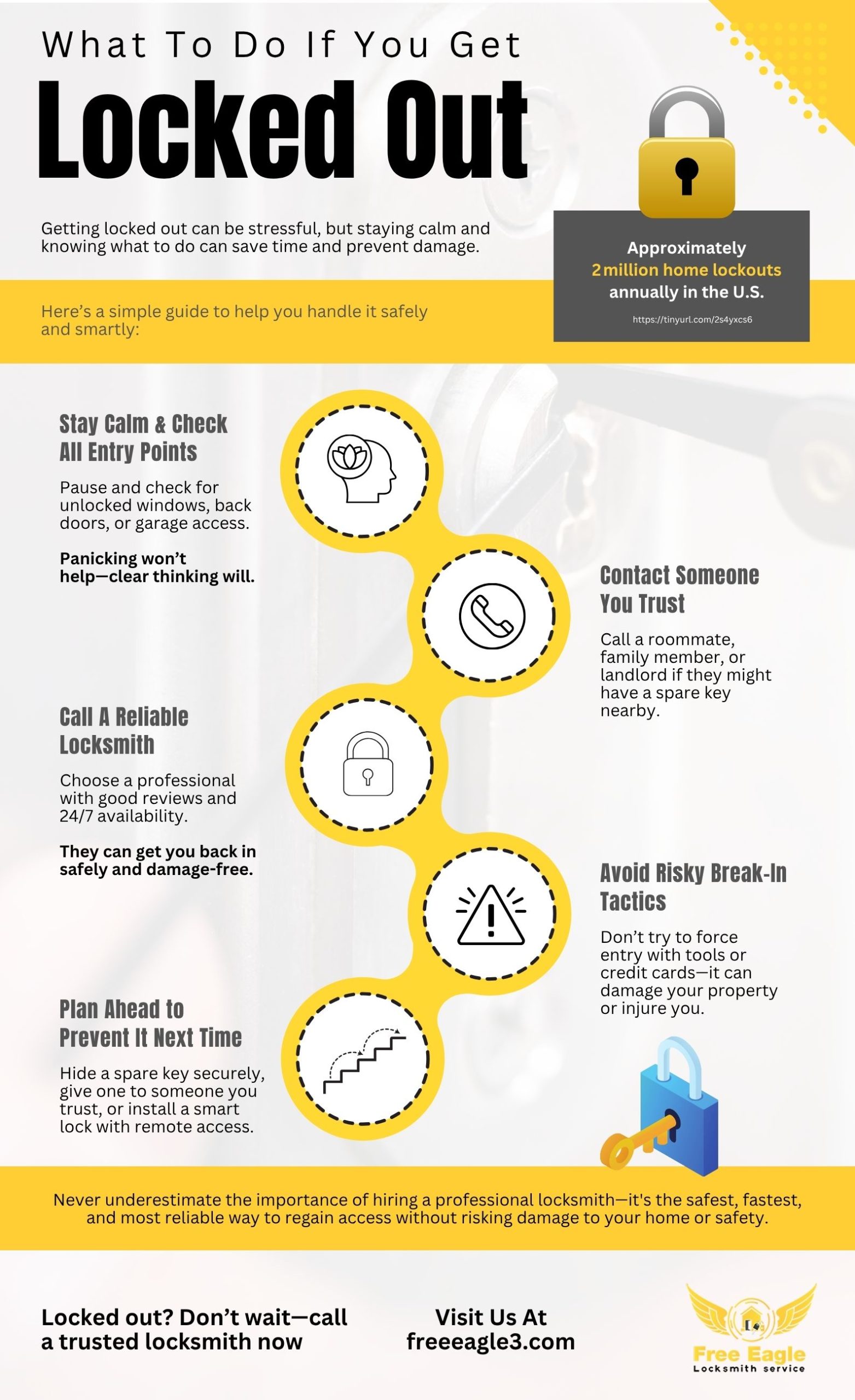 View Larger Image What to Do If You Get Locked Out?Getting locked out can be stressful, but staying calm and knowing what to do can save time and prevent damage.By adil_9098|2025-08-06T08:25:45+00:00August 8, 2025|Blog|0 CommentsShare This Story, Choose Your Platform!FacebookTwitterLinkedInRedditWhatsAppTumblrPinterestVkXingEmail About the Author: adil_9098 Related Posts What to Do if Your House Key No Longer Turns Smoothly Gallery What to Do if Your House Key No Longer Turns Smoothly Locksmith Tips for Keeping Your Garage Secure Gallery Locksmith Tips for Keeping Your Garage Secure When Is It Time to Upgrade to Commercial-Grade Locks? Gallery When Is It Time to Upgrade to Commercial-Grade Locks? What to Do If You Lock Your Keys Inside the Trunk Gallery What to Do If You Lock Your Keys Inside the Trunk Leave A Comment Cancel replyComment Save my name, email, and website in this browser for the next time I comment. Δ